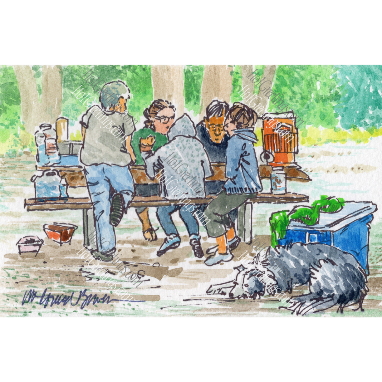 To purchase a 17”x11” Full-Color Fine Art Edition Printed on White 80 Lb Paper Cover Stock click on the button below. To purchase a custom sized giclée print of your choosing on 140 lb PREMIUM textured watercolor paper of Conrad’s painting "Solving a Puzzle at Tony Grove" framed or unframed, please contact customerservice@1to1greetings.com and describe your specific request. Please include your name & contact information. Thank you!